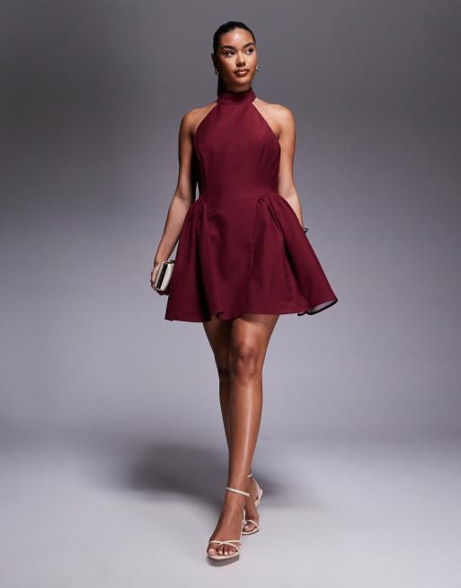 Jarlo high neck dropped waist mini dress in burgundy