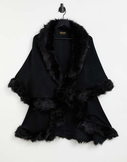 Jayley double layer faux fur trim cape in black