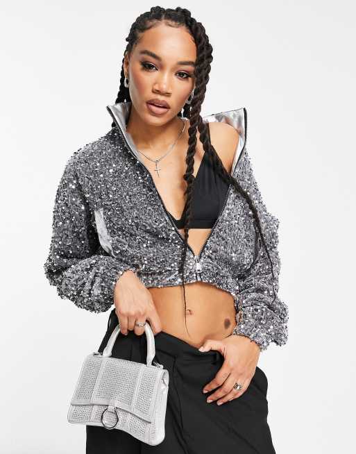 Jayley statement sequin bomber jacket in silver