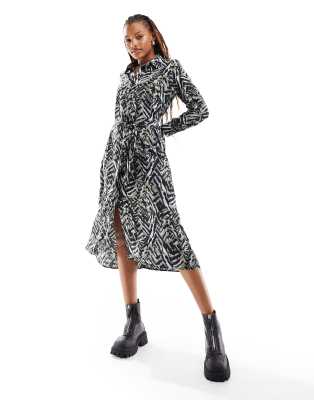 JDY belted midi shirt dress in abstract animal print