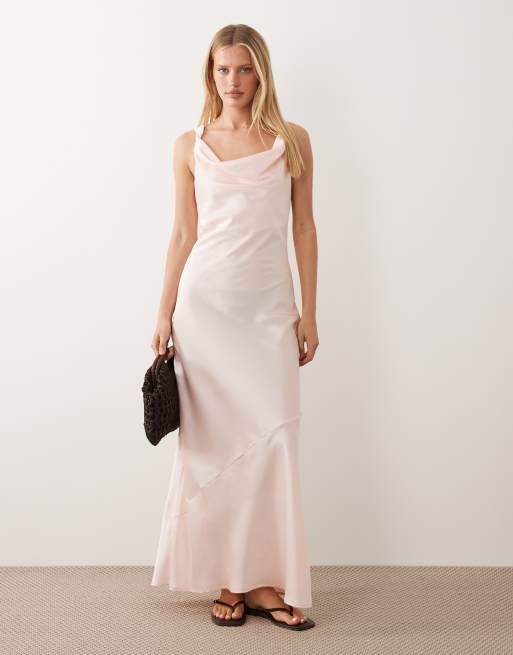JDY cowl neck satin maxi dress in light pink