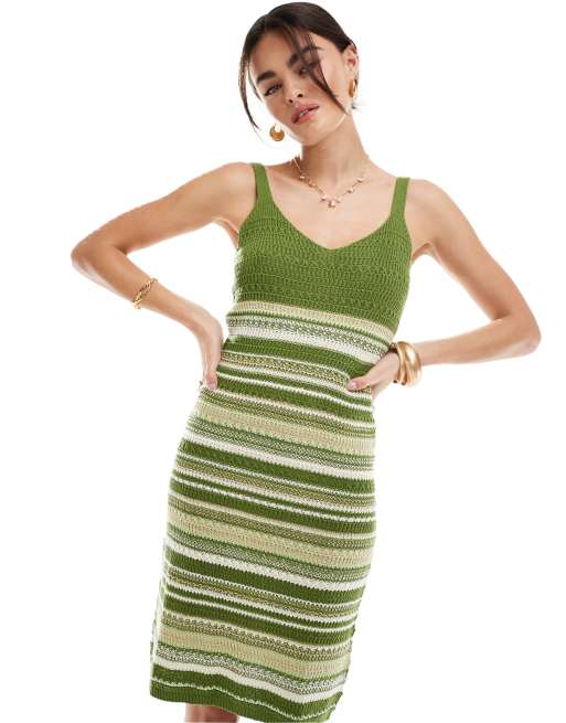 JDY knit stripe dress in khaki