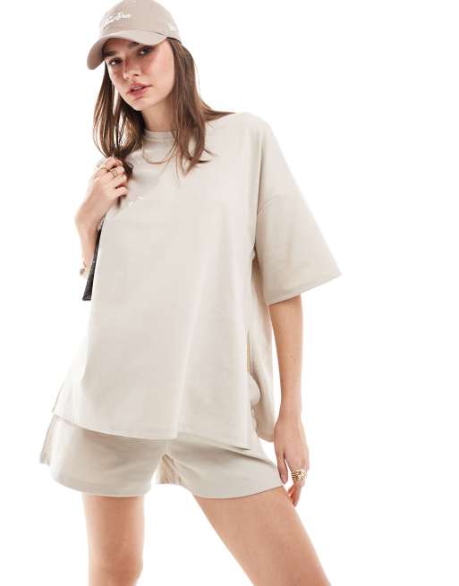 JDY oversized T-shirt with side slit in stone - part of a set