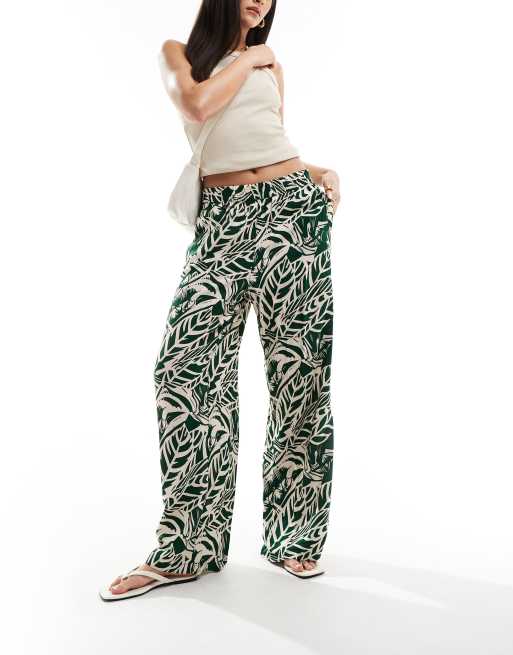JDY wide leg pull on pants in beige with tropical print