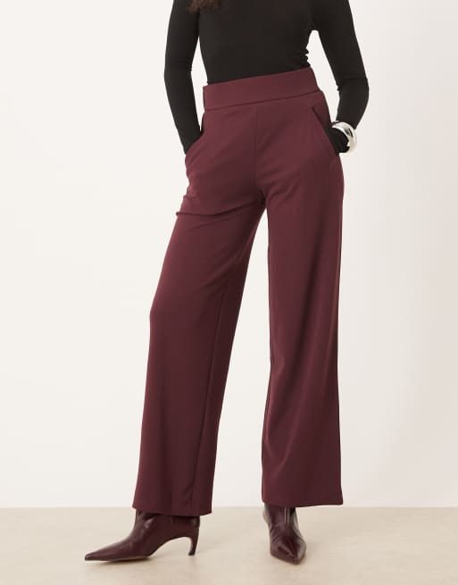 JDY wide leg tailored pants in burgundy