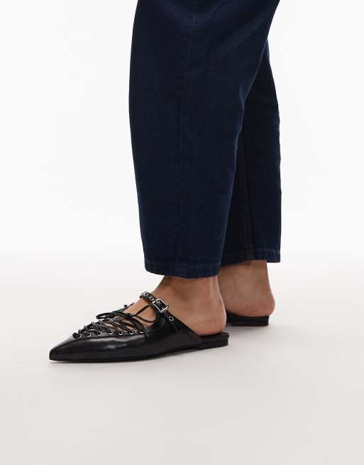 Jeffrey Campbell pointed lace-up mules in black