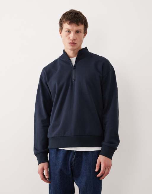 JJ Rebel oversize 1/4 zip sweatshirt in navy