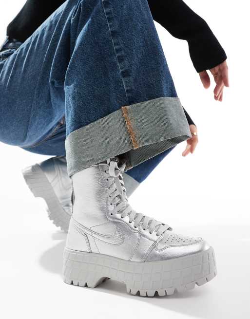 Nike Air Jordan 1 Brooklyn boot in silver and gray