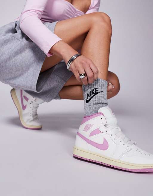 Nike Air Jordan 1 Mid sneakers in white and pink
