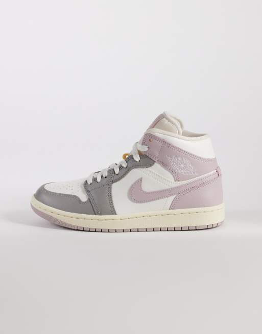 Nike Air Jordan 1 Mid sneakers in white, gray and baby pink