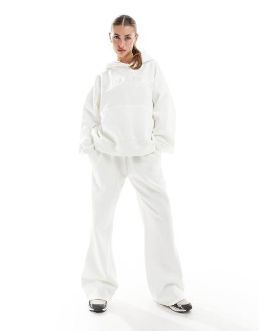Kaiia cotton blend logo wide leg sweatpants in white - part of a set