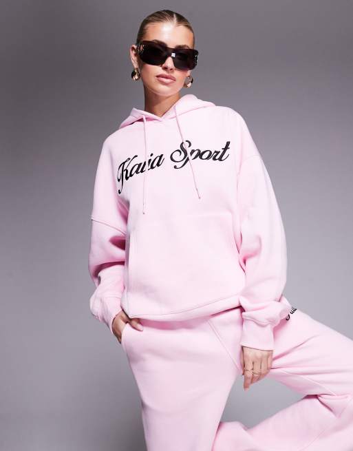 Kaiia cotton blend sport embroidered script logo hoodie in pink and black - part of a set