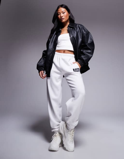 Kaiia cotton blend Studio Petite cuffed wavy logo sweatpants in cream and black