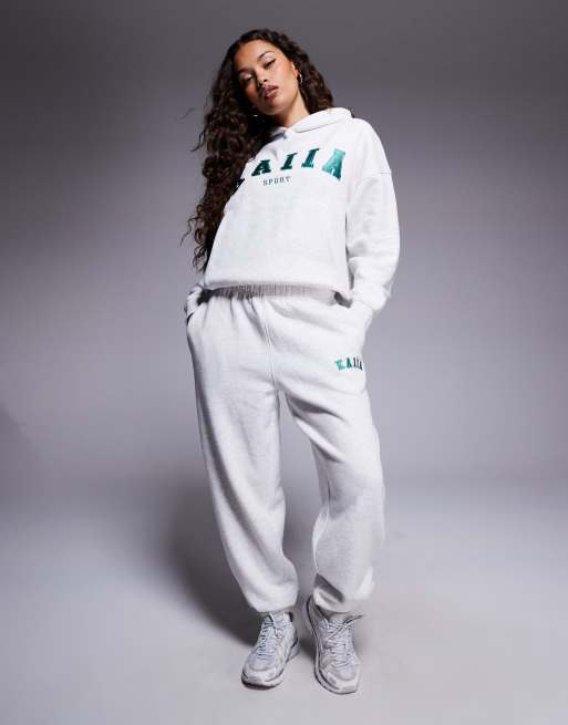 Kaiia cotton rich sport Petite embroidered logo cuffed sweatpants in heather gray - part of a set