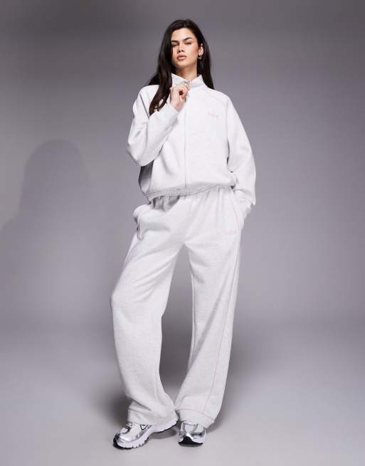 Kaiia embroidered logo cropped zip through sweatshirt jacket and wide leg sweatpants set in gray heather