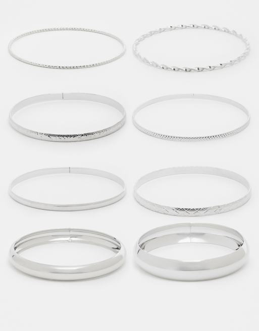 Kaiia Exclusive 7-pack stainless steel assorted bangles in silver