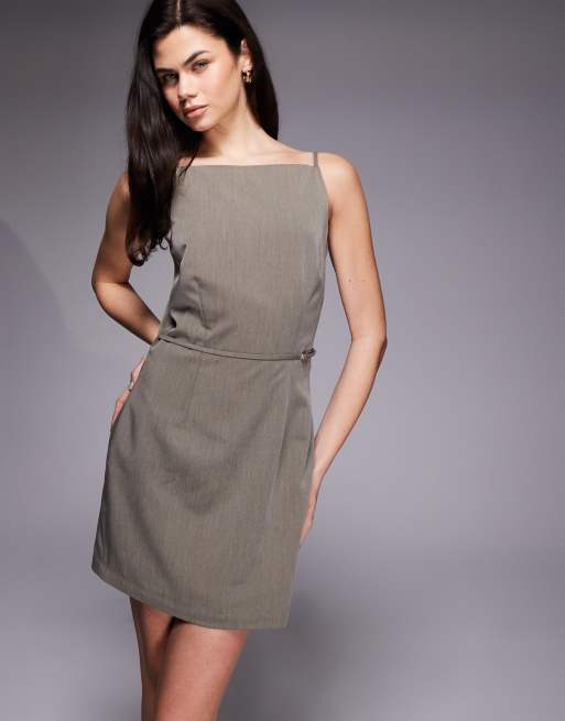 Kaiia exclusive 90s tailored square neck open back belted mini dress in charcoal