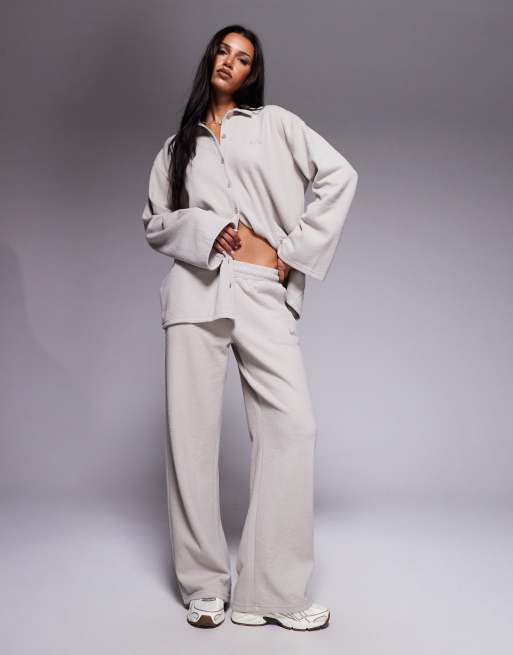 Kaiia exclusive cotton rich ribbed straight leg sweatpants in stone - part of a set