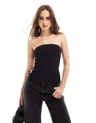 Kaiia exclusive double layered slinky bandeau side split top in black