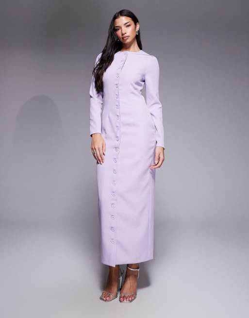 Kaiia exclusive tailored long sleeve button up maxi dress in lilac