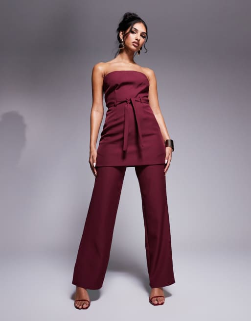 Kaiia exclusive tailored tie waist wide leg pants in burgundy - part of a set