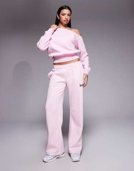 Kaiia oversized one shoulder sweatshirt and wide leg sweatpants set in baby pink