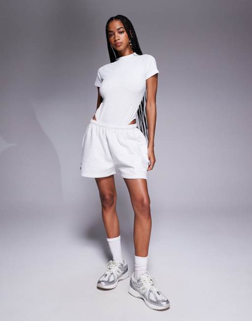 Kaiia short sleeve high neck bodysuit and mini sweat shorts set in light gray heather