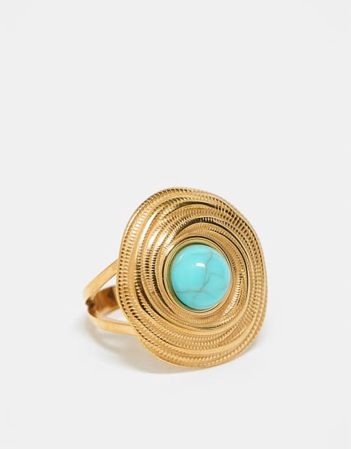 Kaiia stainless steel round turquoise detail adjustable ring in gold