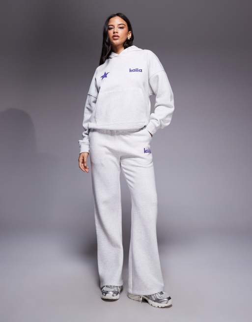 Kaiia star logo graphic oversized hoodie and wide leg sweatpants set in gray