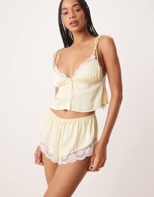 Kat The Label Arabella satin lace trim shorts in limoncello