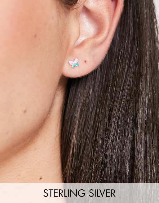 Kingsley Ryan sterling silver enamel butterfly shape stud earrings