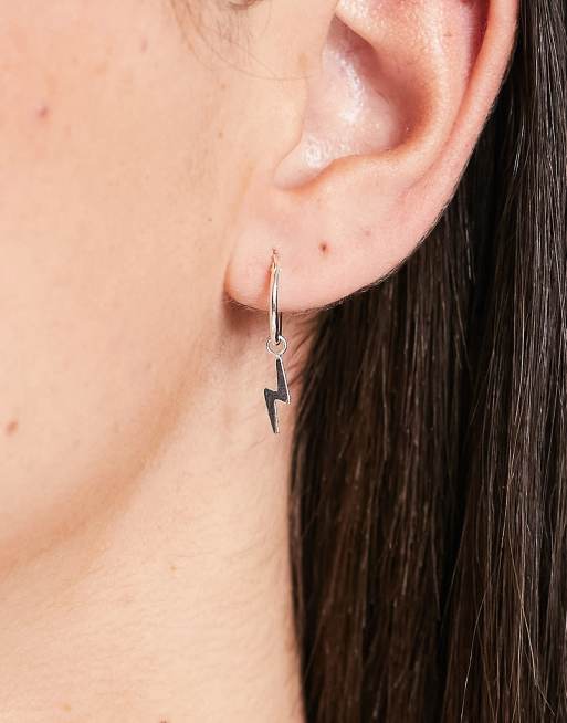 Kingsley Ryan sterling silver hoop earrings with lightning bolt pendant