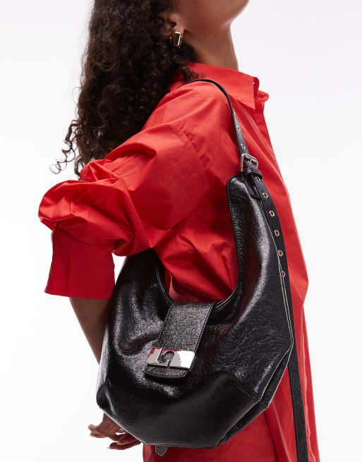 LAAGAM Vixen faux leather textured shoulder bag in black