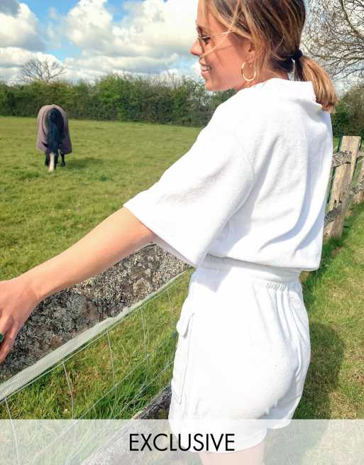 Labelrail x Collyer Twins high waist shorts in towelling set