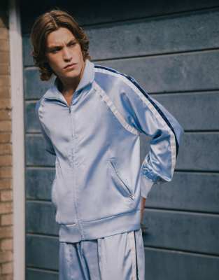 Labelrail x Notion side stripe satin track top in ice blue - part of a set