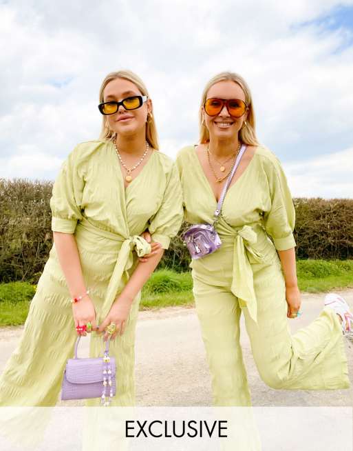 Labelrail x Olivia & Alice jumpsuit with wrap tie waist in texture