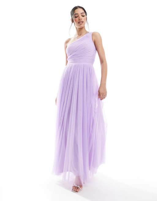 Lace & Beads Bridesmaid one shoulder maxi dress in lilac