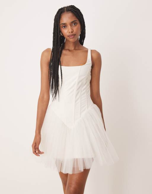 Lace & Beads dropped waist corset detail mini dress in butter cream