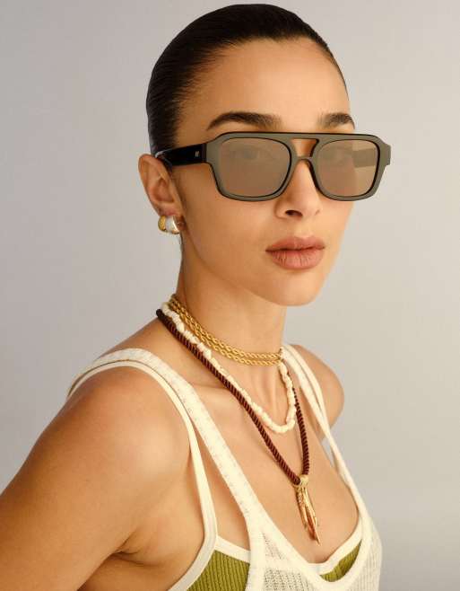 Le Specs Subzero aviator sunglasses in black/brown