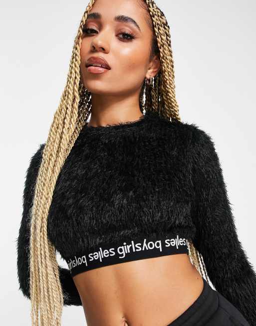 Les Girls Les Boys fluffy crop top with logo underband in black