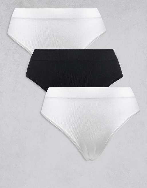 Lindex 3 pack seamless rib knit brazilian briefs in black & white