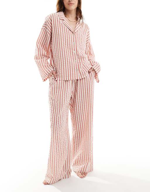 Lindex seersucker pajama top in coral stripe