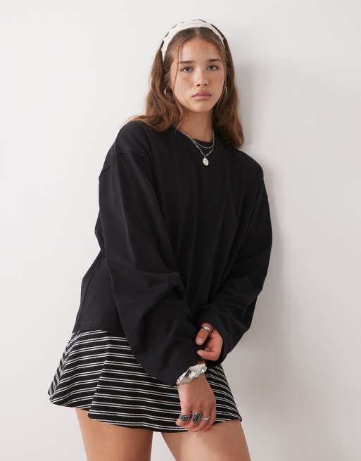 Lioness Bloom cotton long sleeve crew neck boxy T-shirt in black