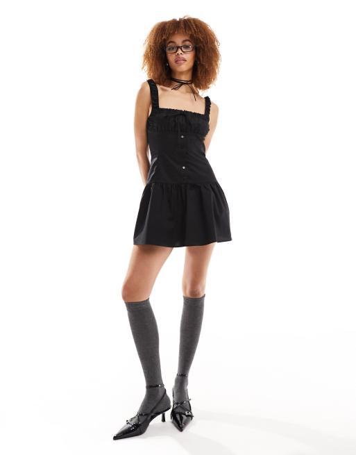 Lioness milkmaid tie detail mini dress in black
