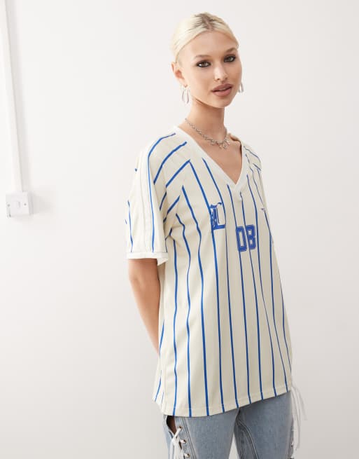 Lioness V-neck sports jersey in blue and cream stripe - part of a set