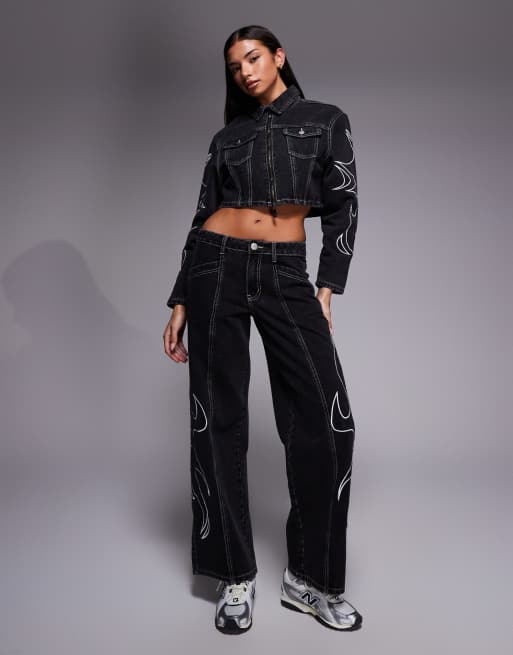 Liquor N Poker relaxed low rise jeans with appliqué detailing in black - part of a set