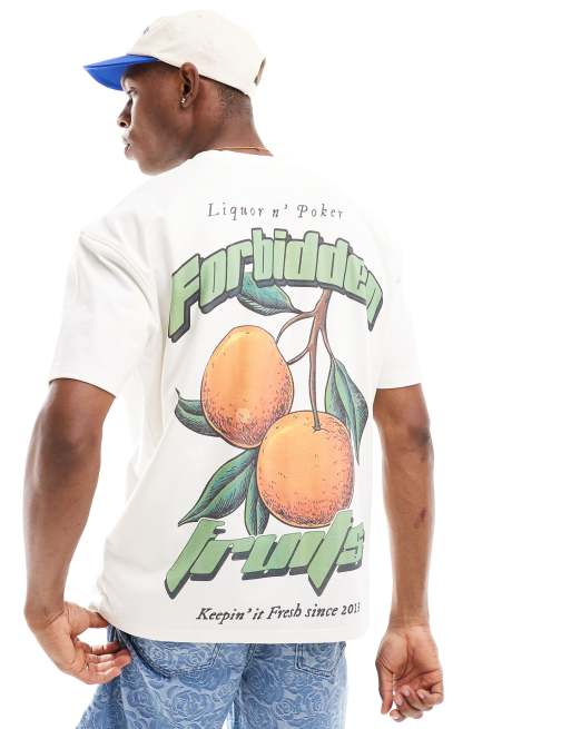 Liquor & Poker oversized t-shirt with fruit back print in white