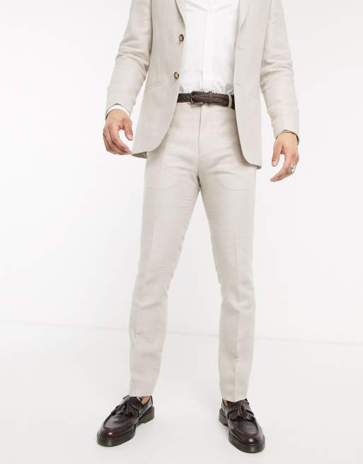 Lockstock slim fit suit pants in linen ecru check