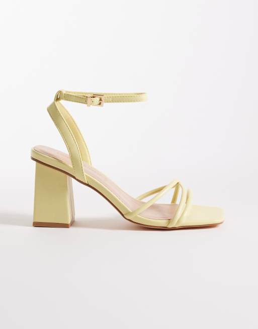 London Rebel Wide Fit Ash strappy mid block heeled sandals in citrus lime