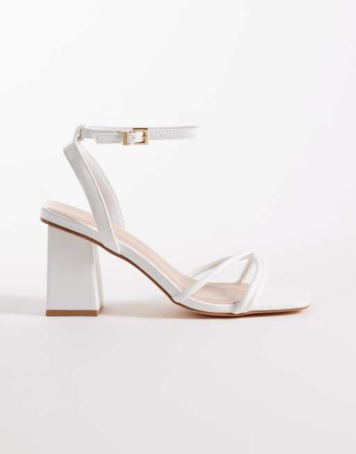 London Rebel Wide Fit Ash strappy mid block heeled sandals in white